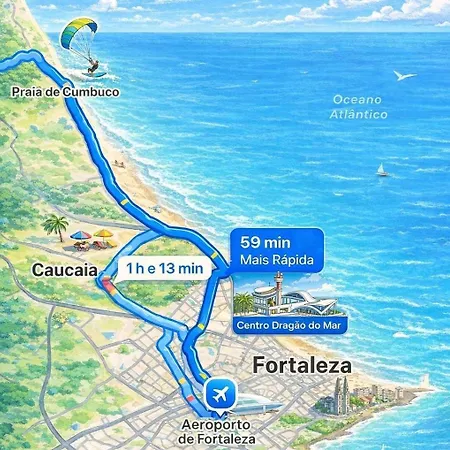 Een wandeling van 20 minuten brengt u naar het centrum van Cumbuco. Het Banana Lake bevindt zich ook binnen 5 km afstand van het appartement.